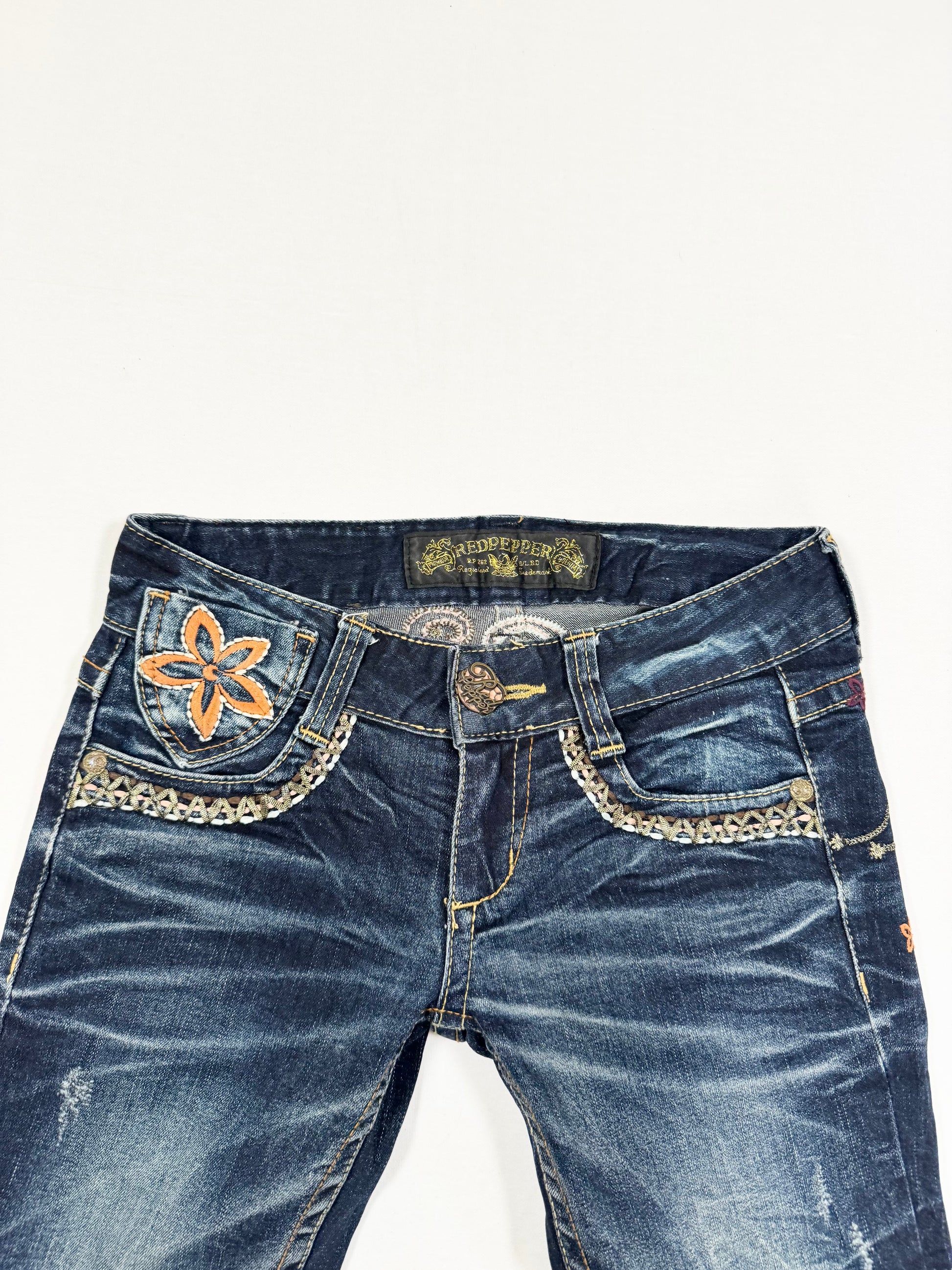 Red Pepper Leopard Floral Flared Jeans ☆ 25”