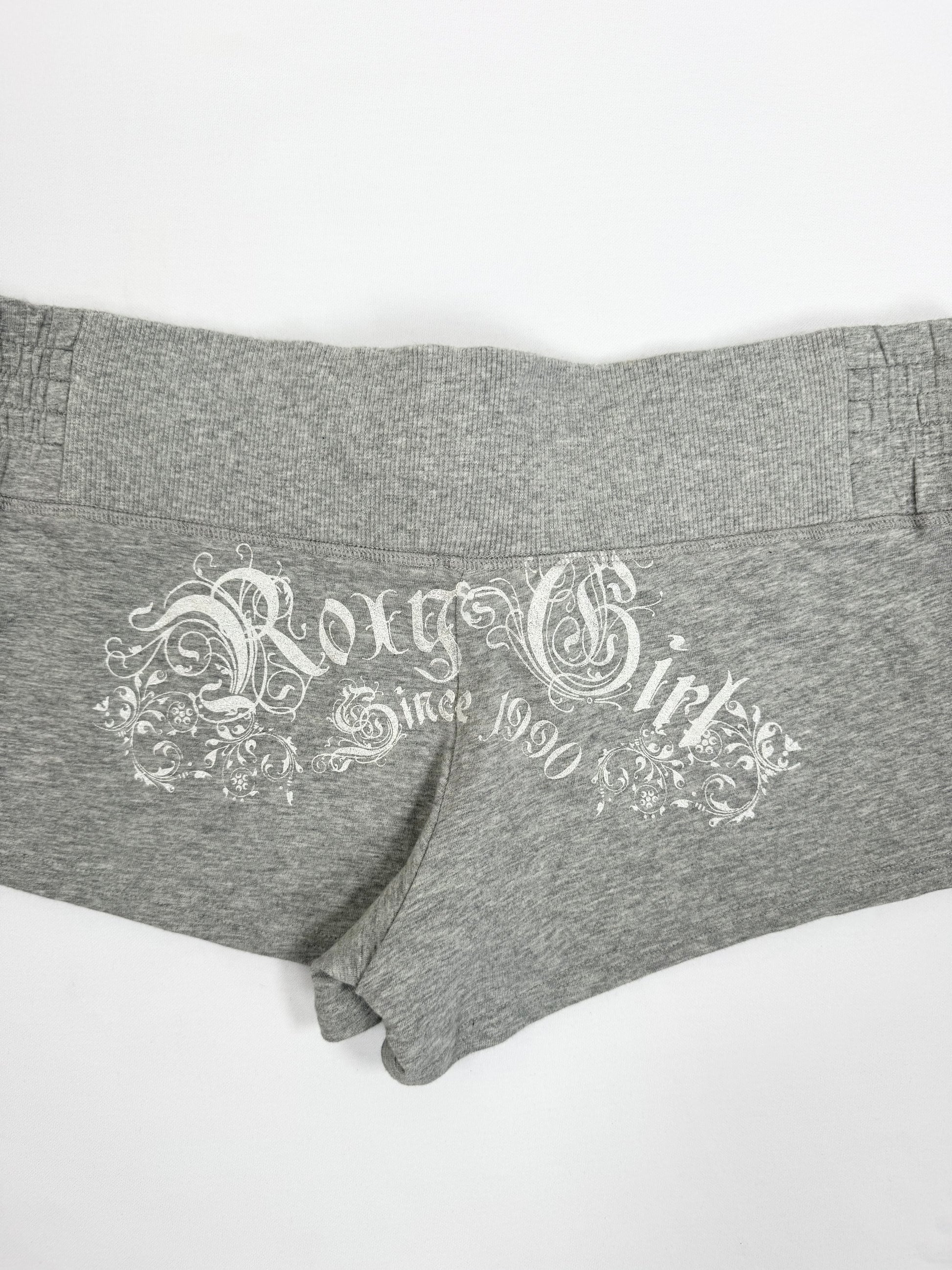 Adorable 00s grey low rise shorts🤍White glittery “Roxy girl” print on the back🤍