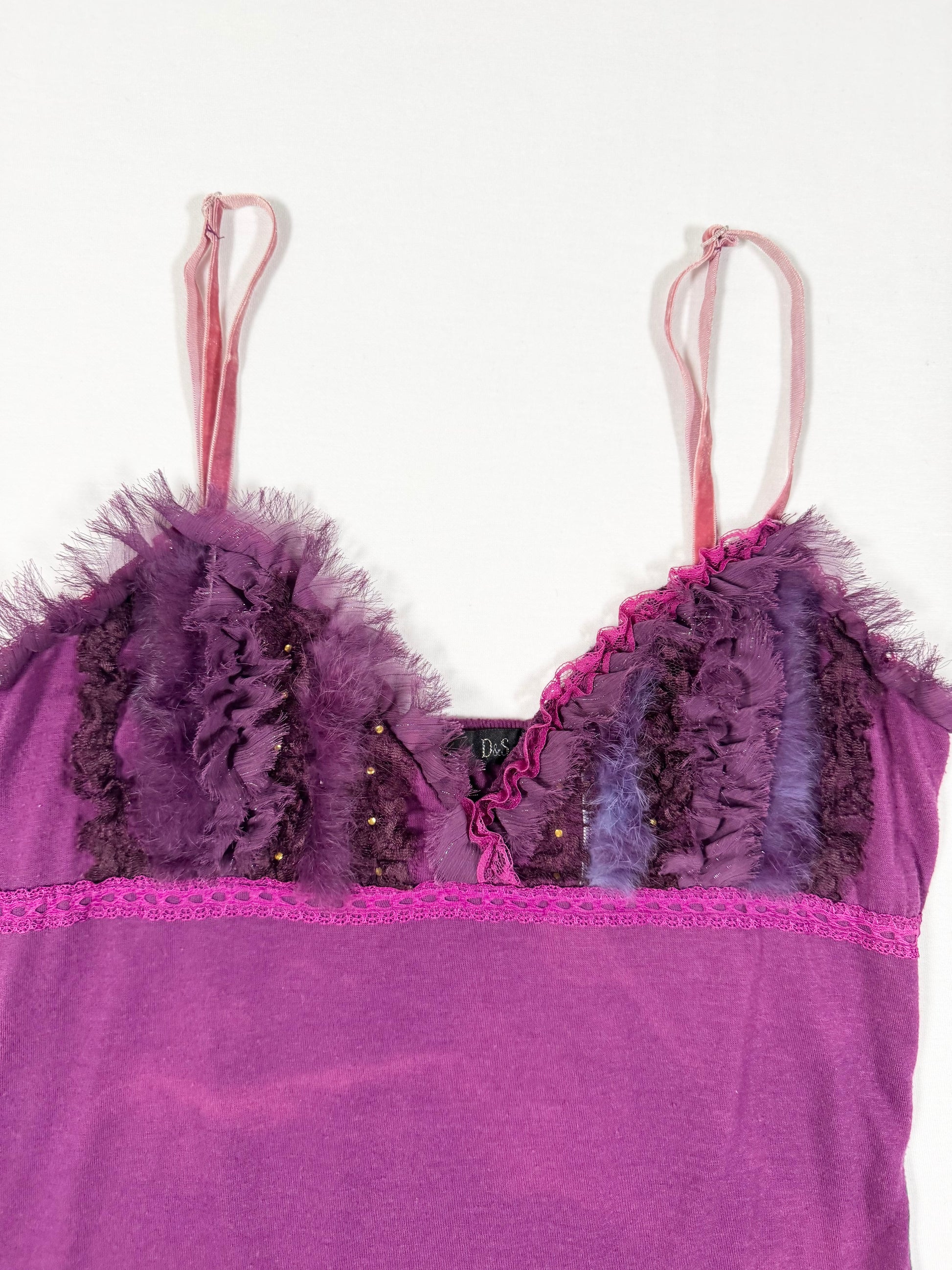 Prettiest 00s purple cami with ruffled bust and hem💜