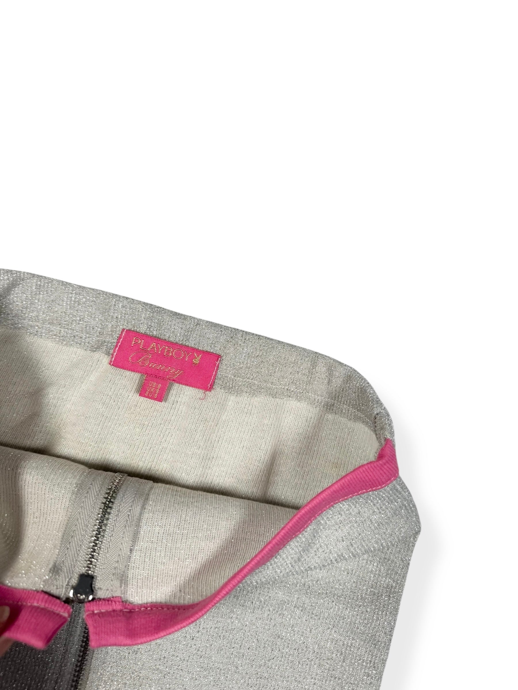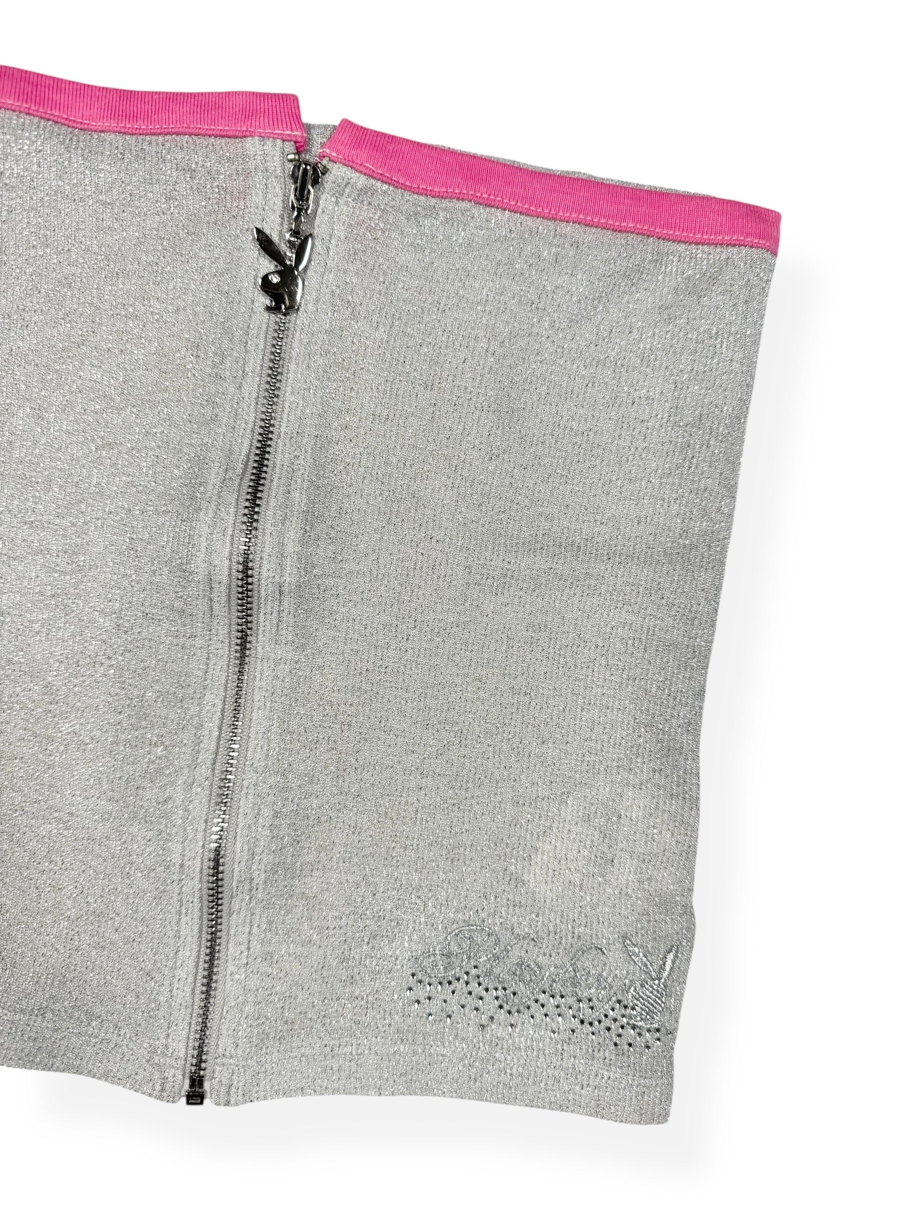 Hot 00s glittery silver playboy tube top🩷Pink trim and silver bunny logo zipper🩷