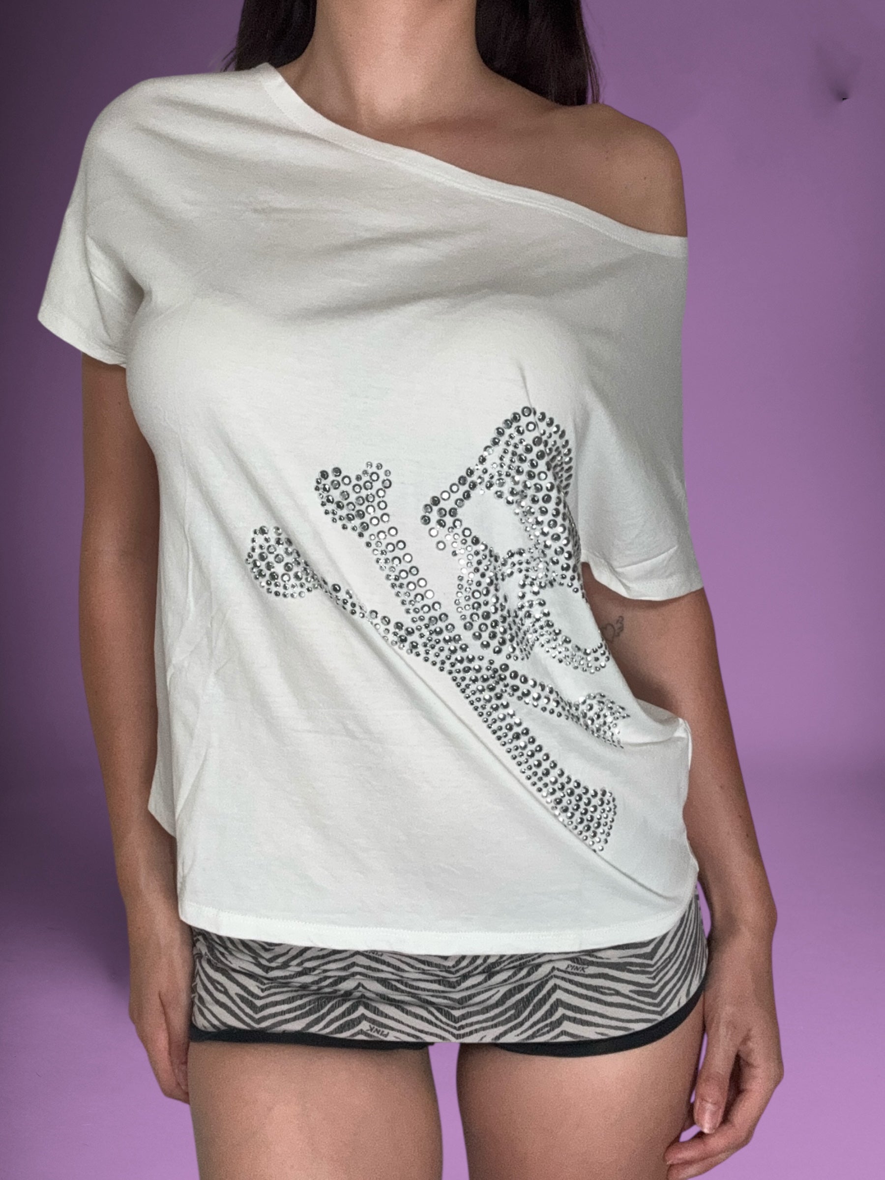 Sick 00s baggy bag wing style tee in white with Diamante skull on the front🤍No tag