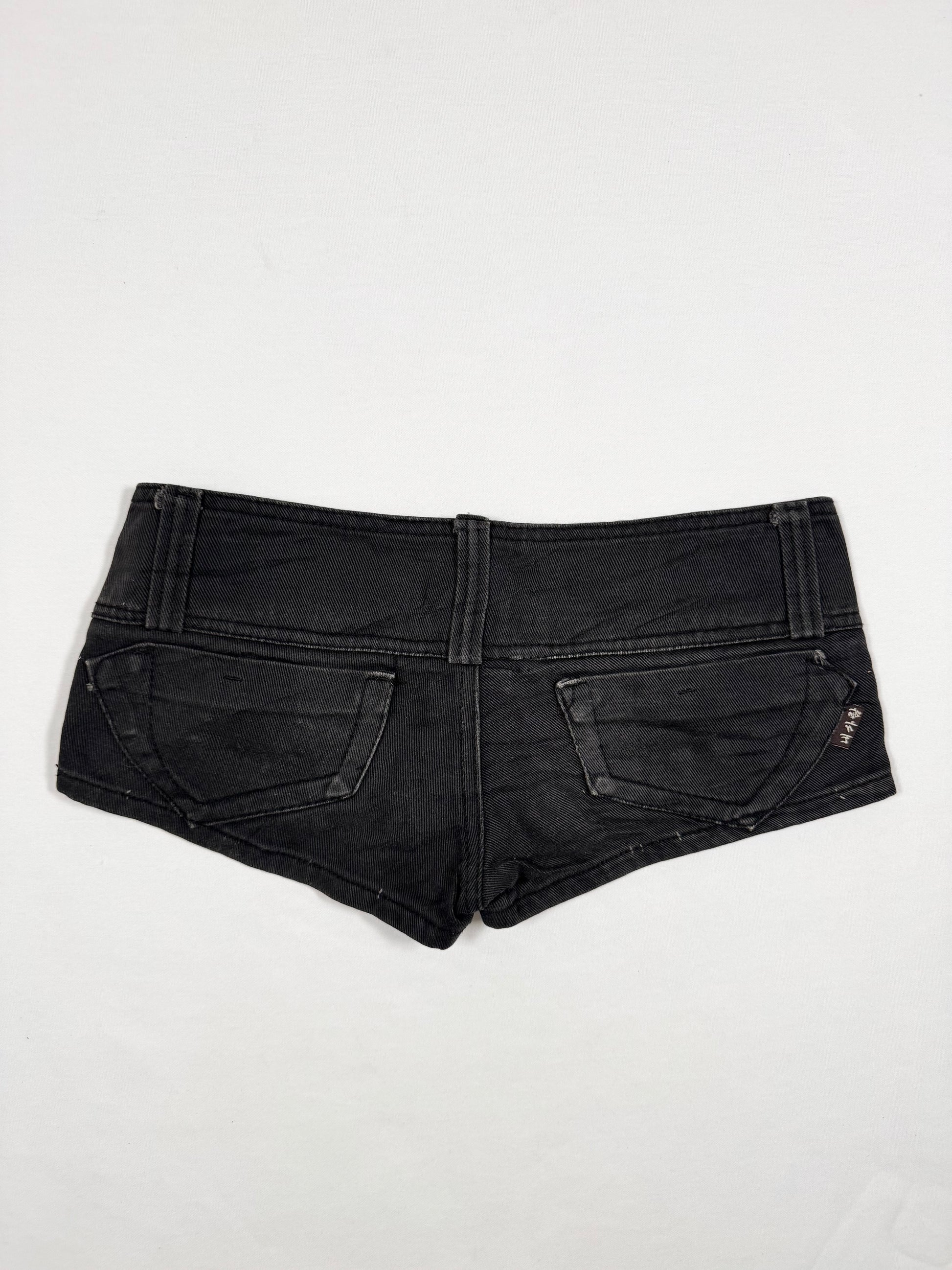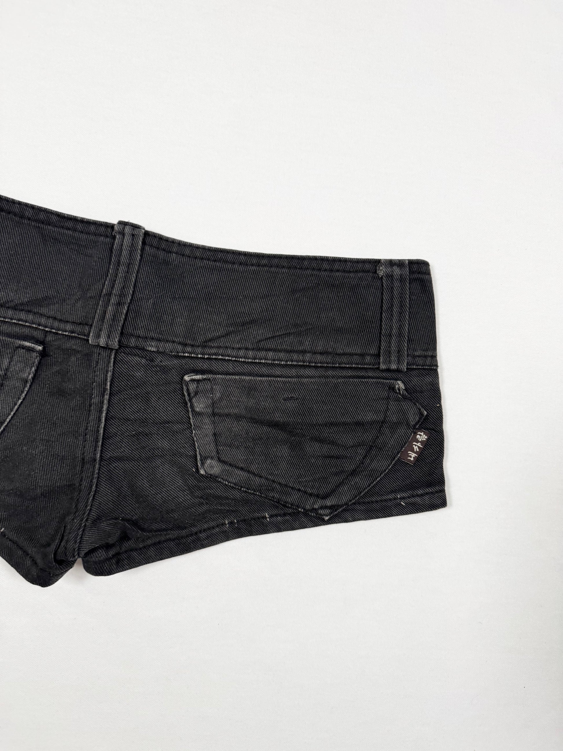 Sexiest 00s ultra low rise black denim micro shorts🖤Pyramid studded front🖤