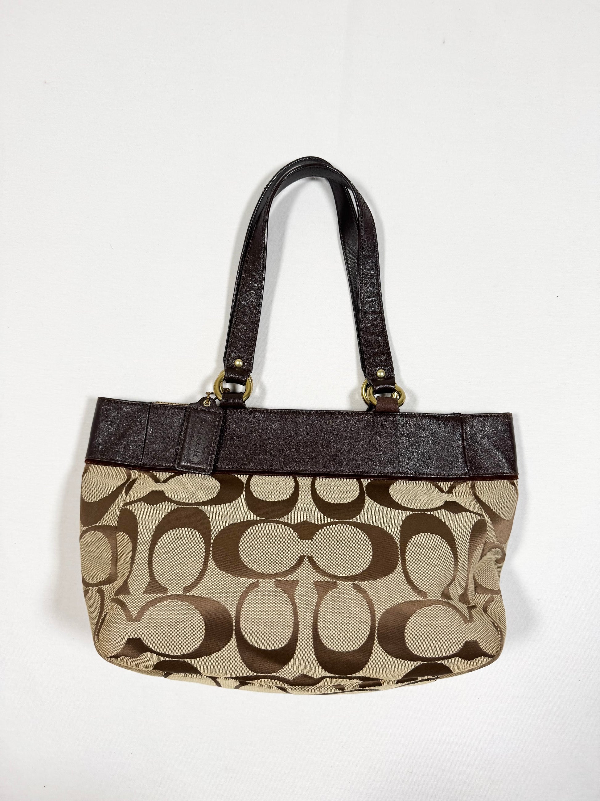 Stunning 00s coach bag in classic monogram print🤎Dark brown leather with gold metal studds🤎