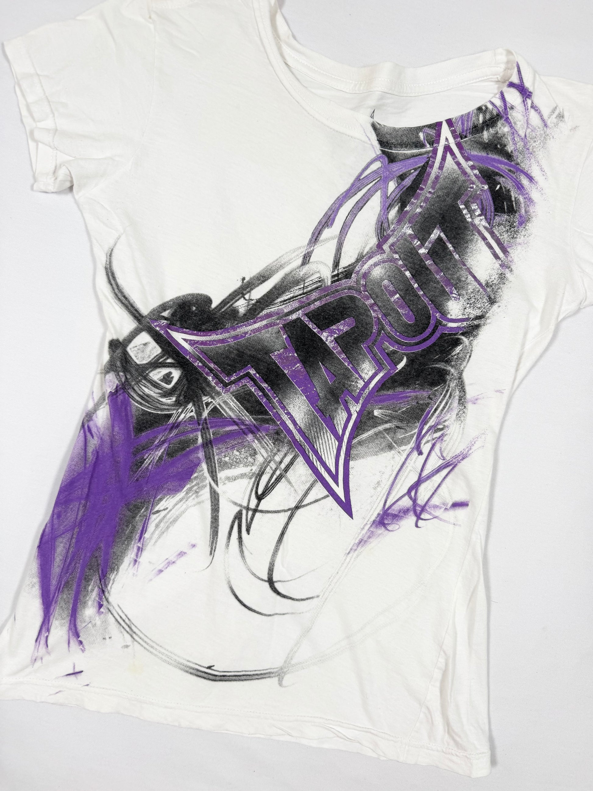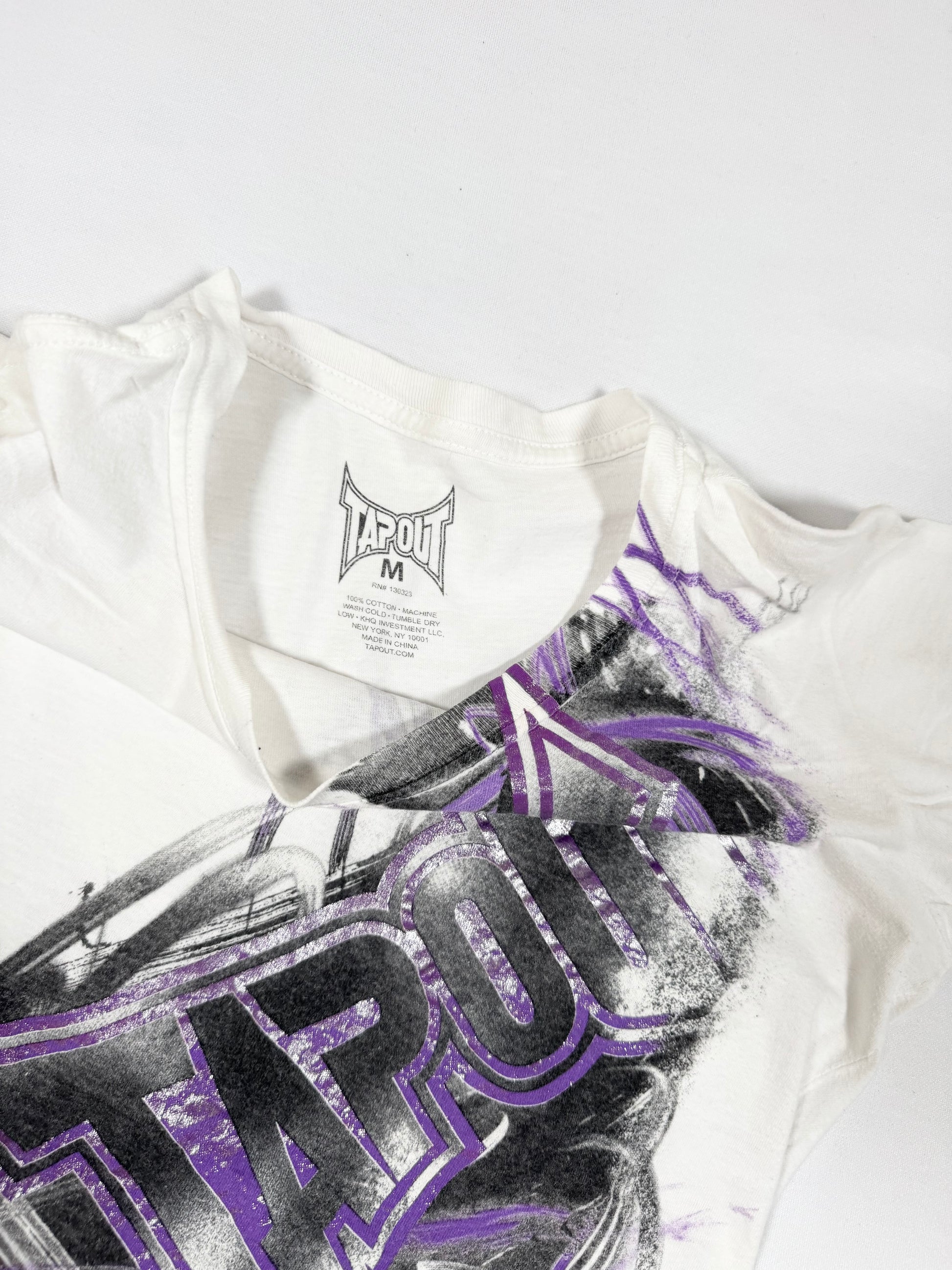Sick 00s tapout tee in white with purple logo on the front💜