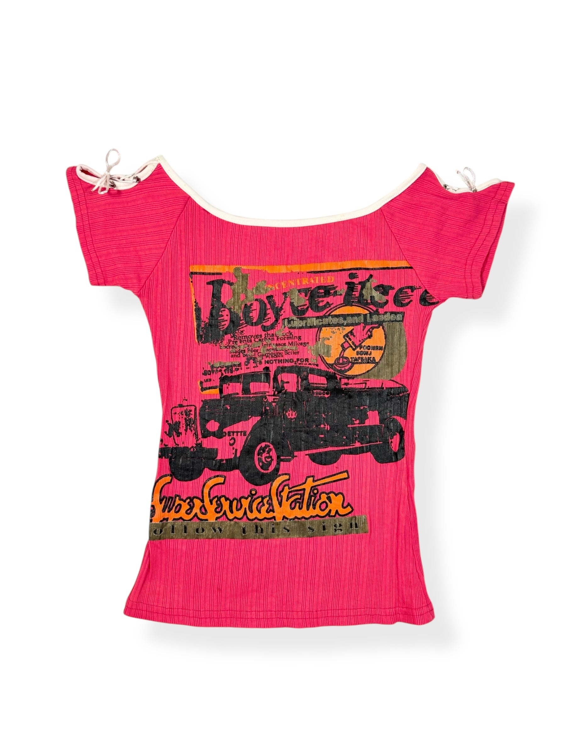 Cute 00s pink tee with print on the front🩷Tie shoulders🩷