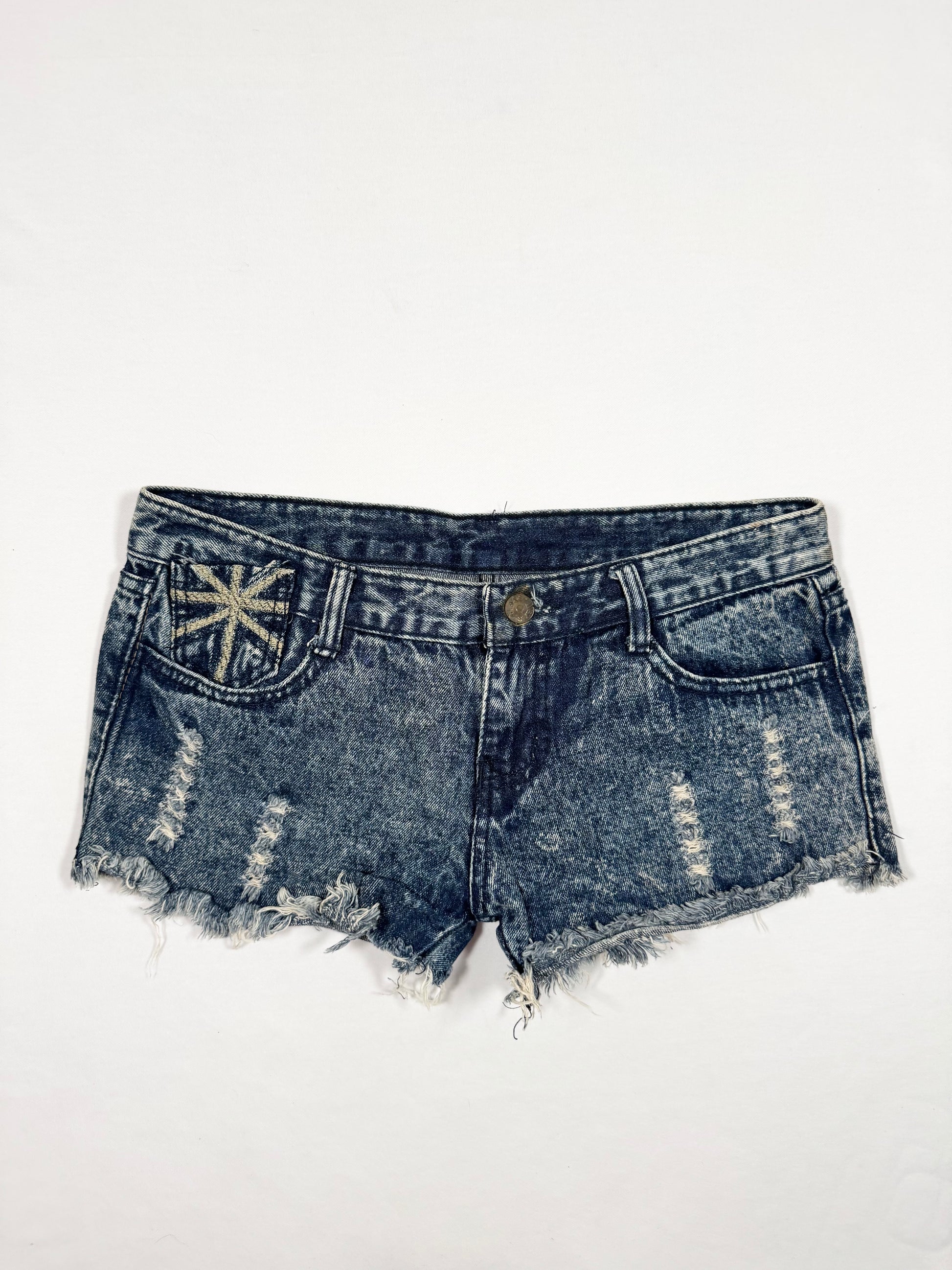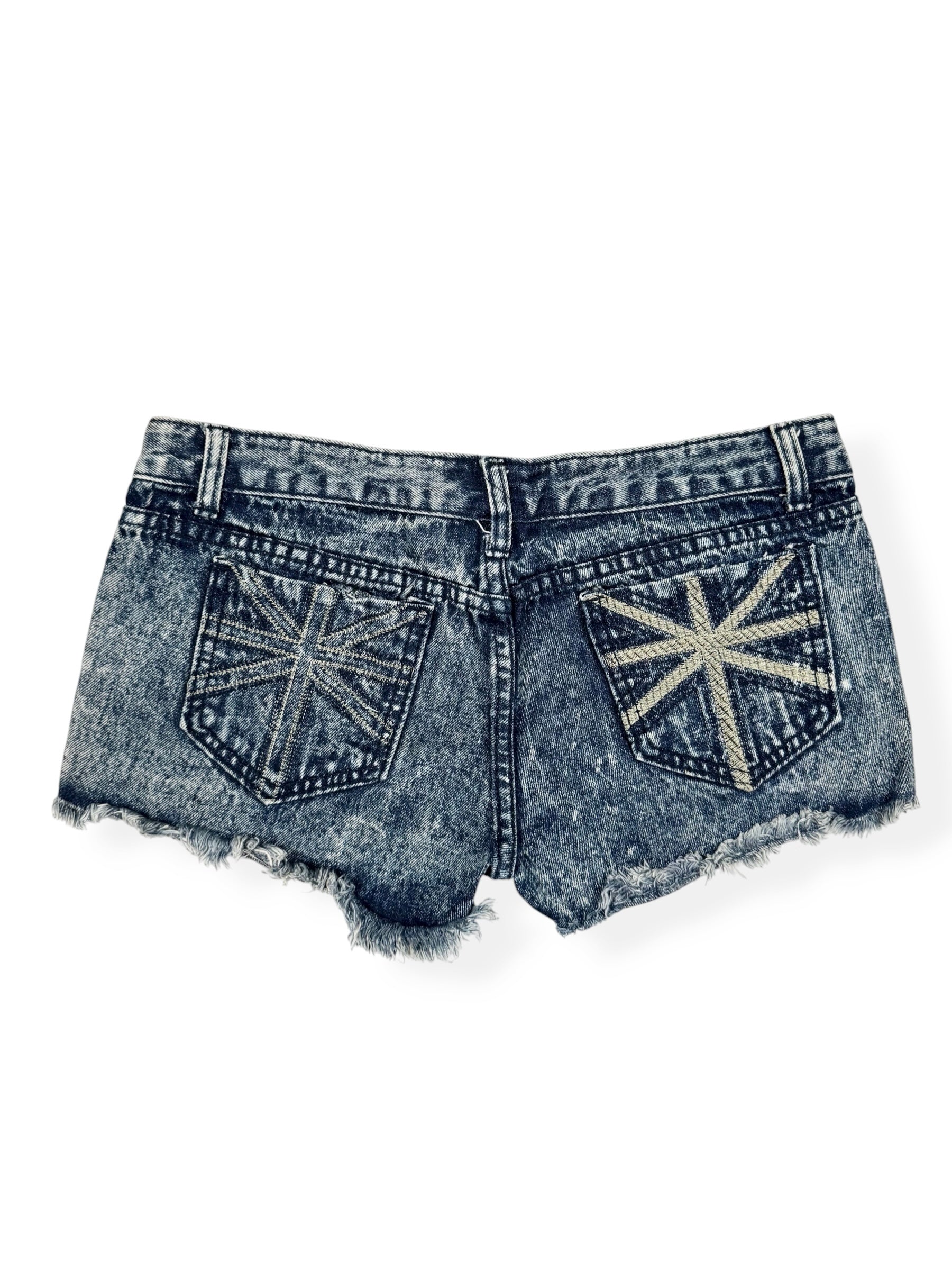 Super cute low rise acid wash denim mini shorts🖤Union jacket embroidered design🖤