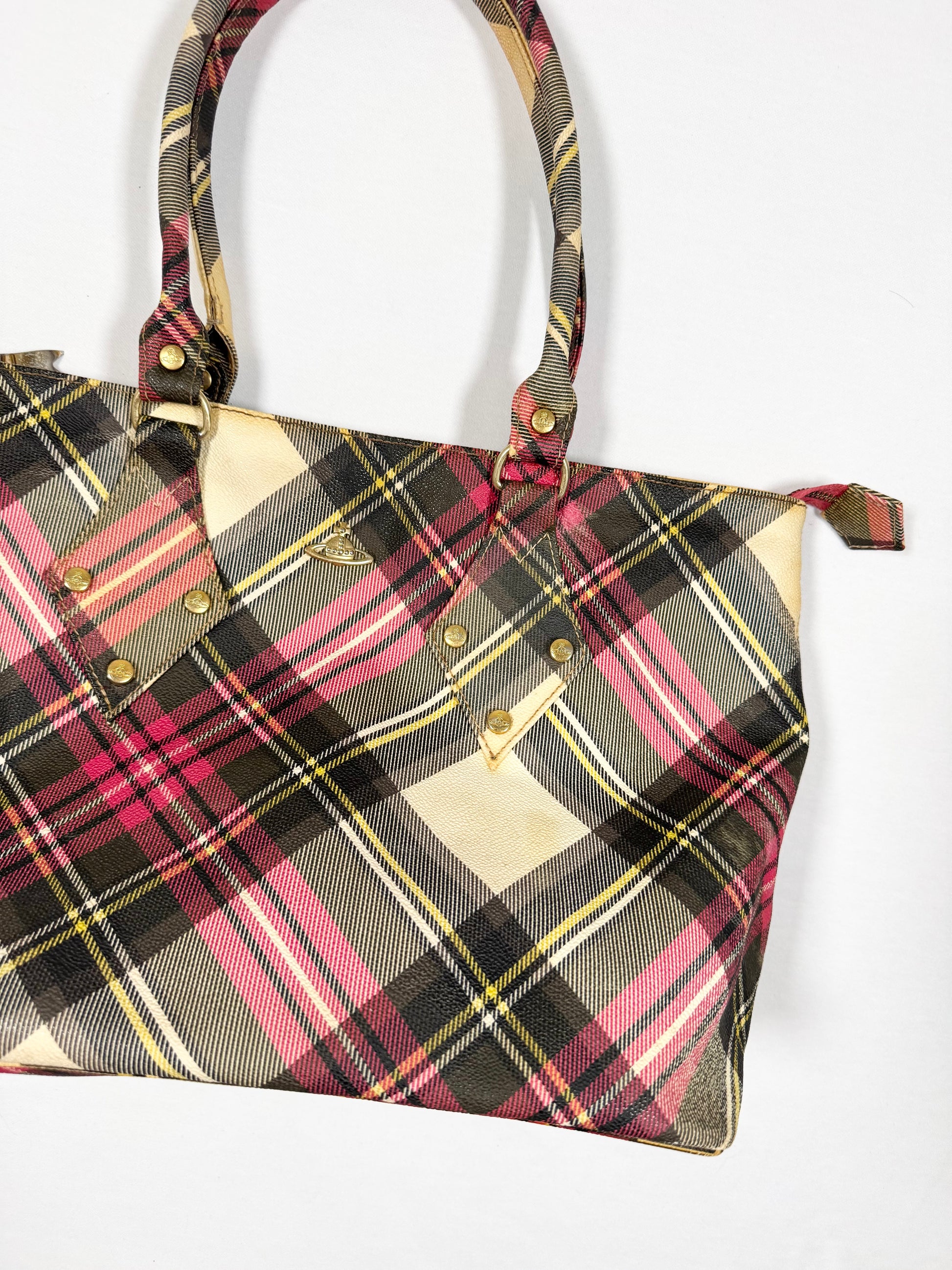 Gorg Vivienne Westwood plaid iconic tote with orb metal hardware♥️