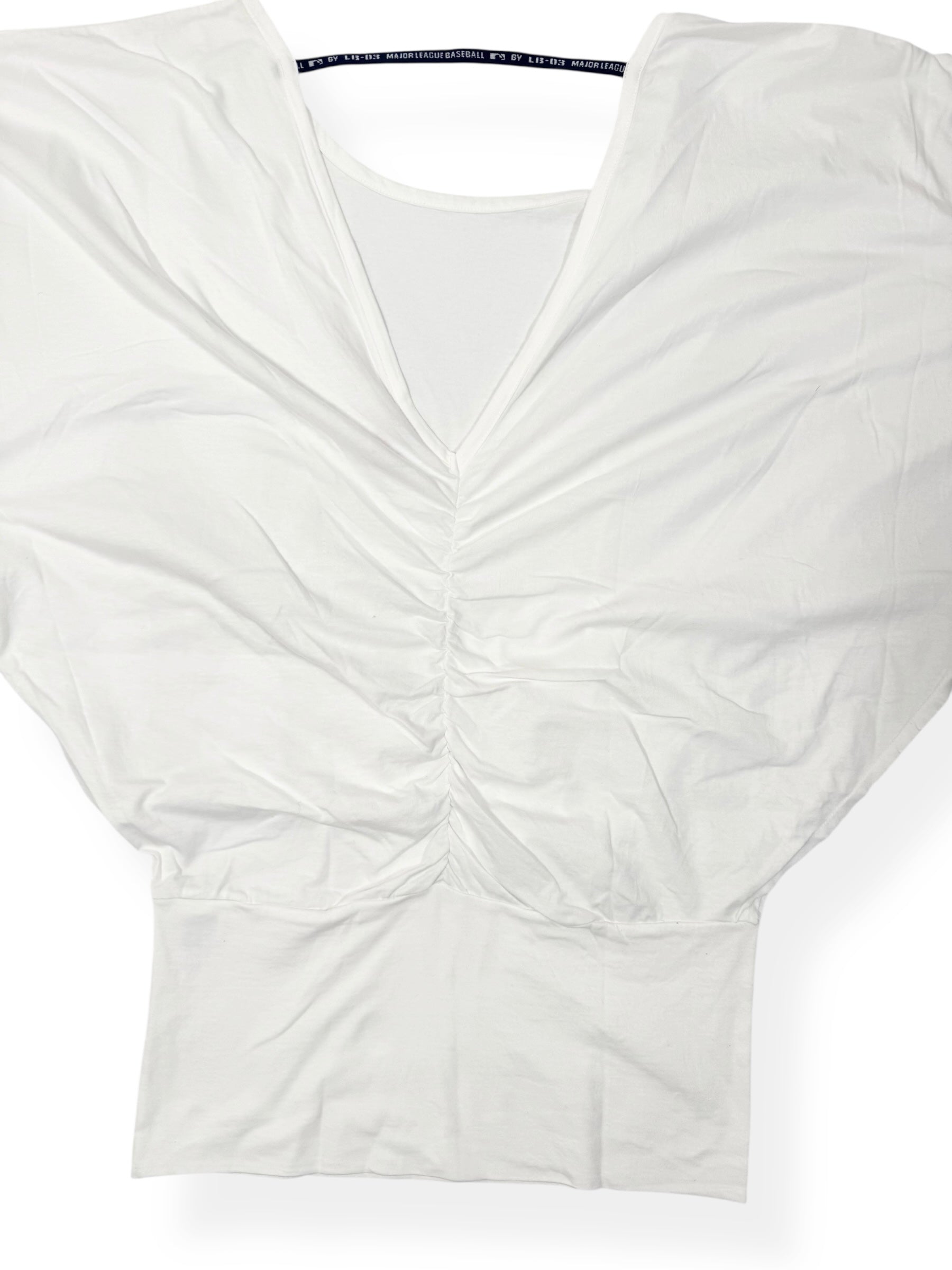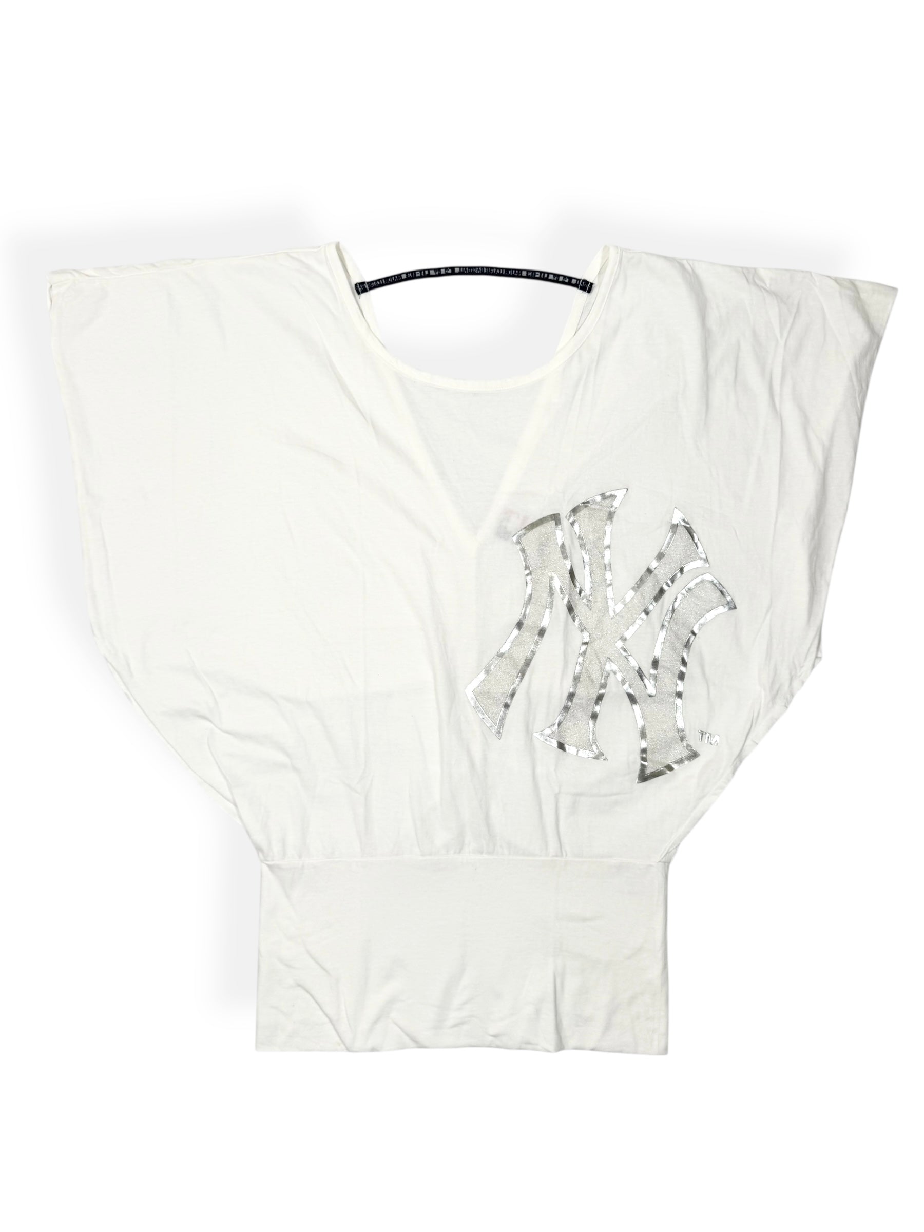 Insane 00s LB-03 white baggy bat wing top🤍Yankees glittery logo🤍Ruched back🤍