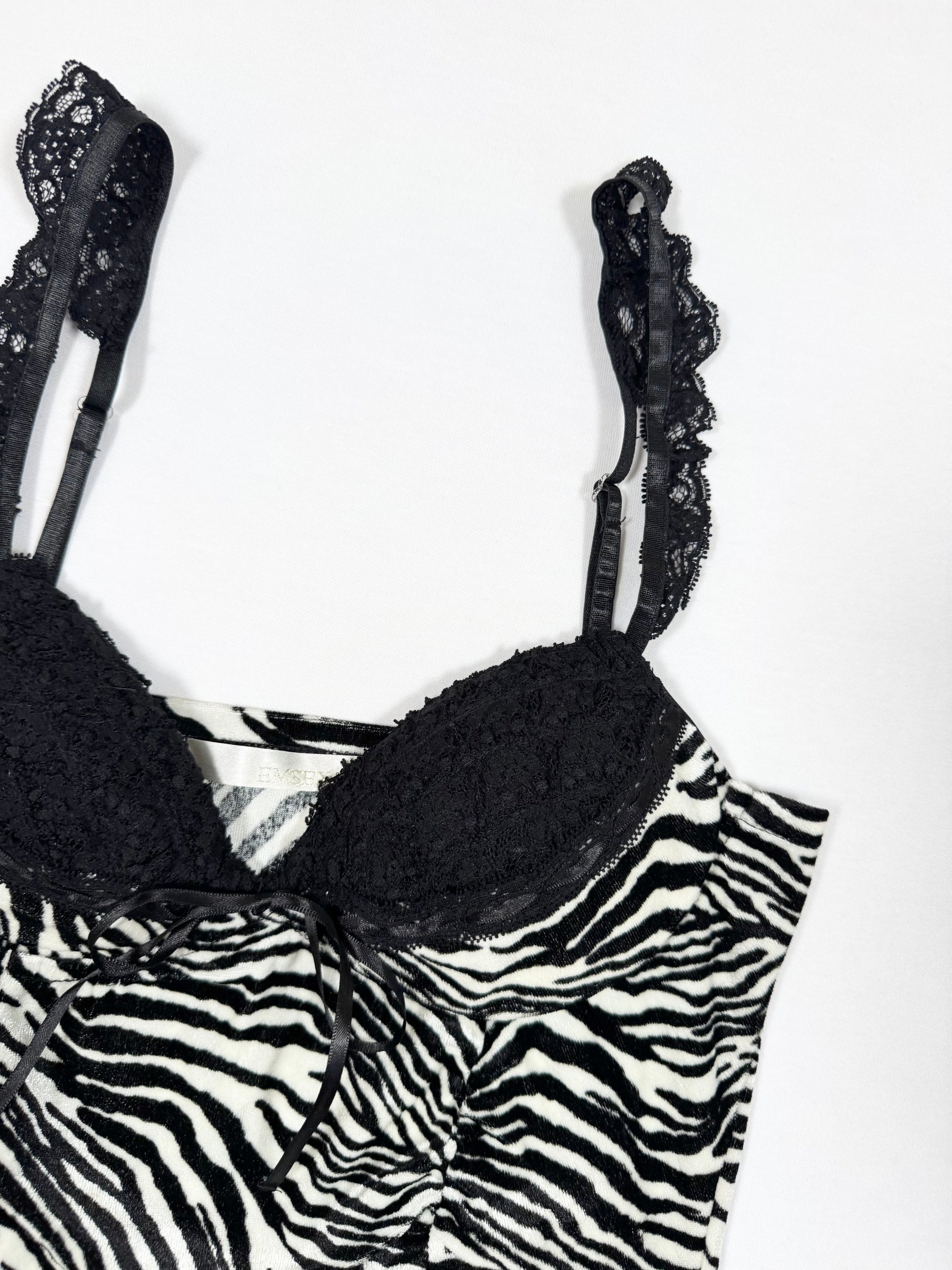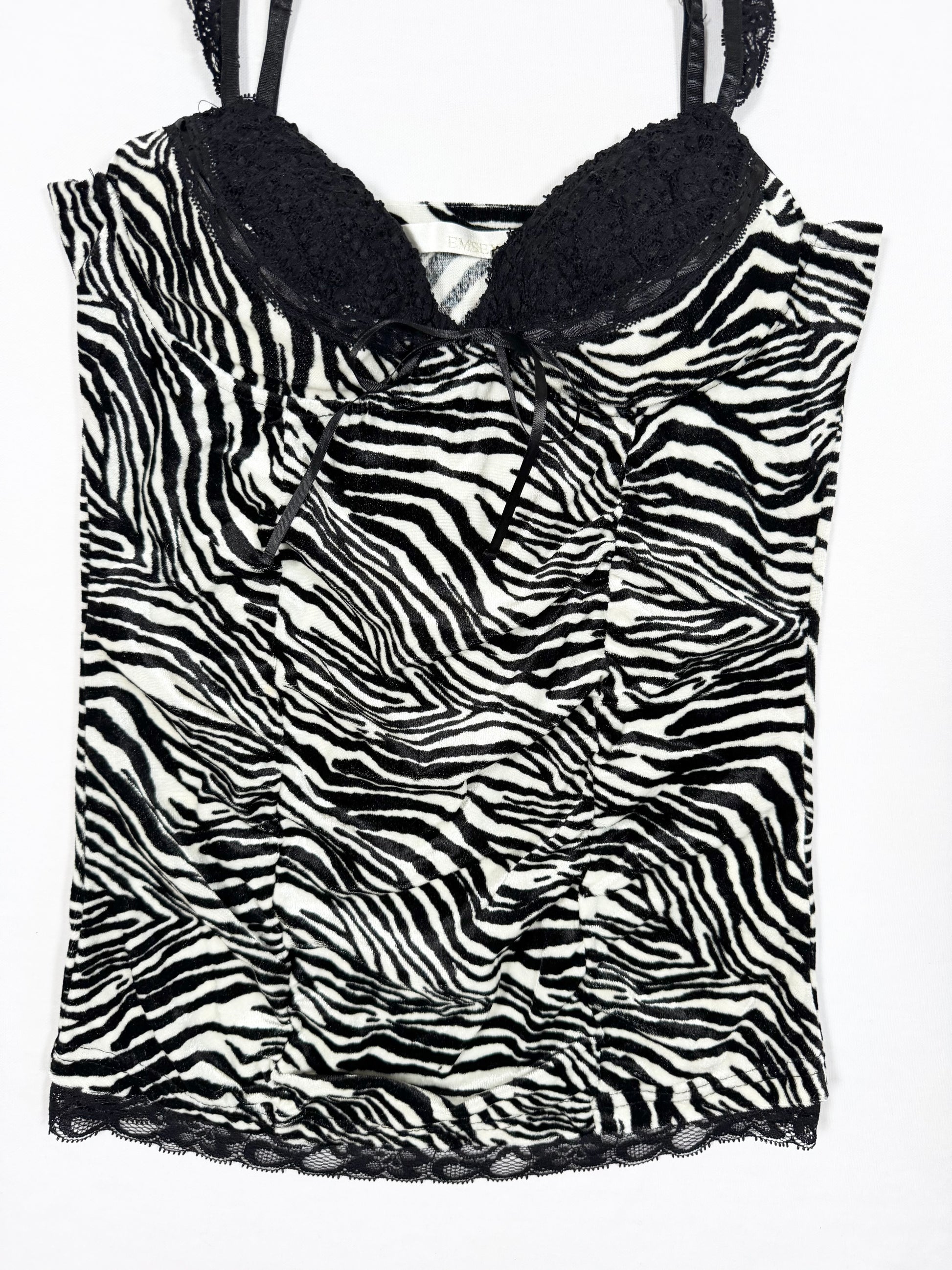 Super cute 00s black and white velour zebra print cami🖤Black lace bust and trim🖤